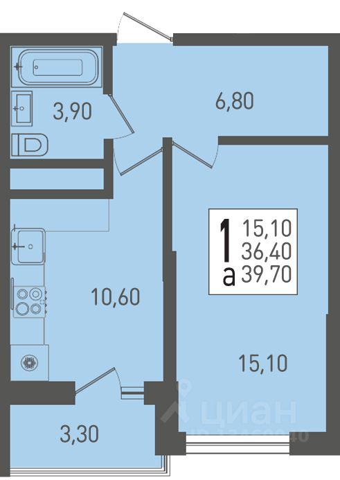 Общая площадь39,7 м²