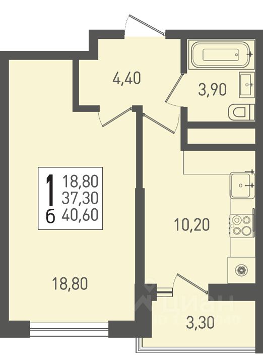Общая площадь40,6 м²