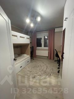 В детской комнате 2-х уровневая кровать; также Два рабочих места с креслами, вертикальный стеллаж для книг, встроенный вместительный шкаф для вещей, шторы блэкаут.