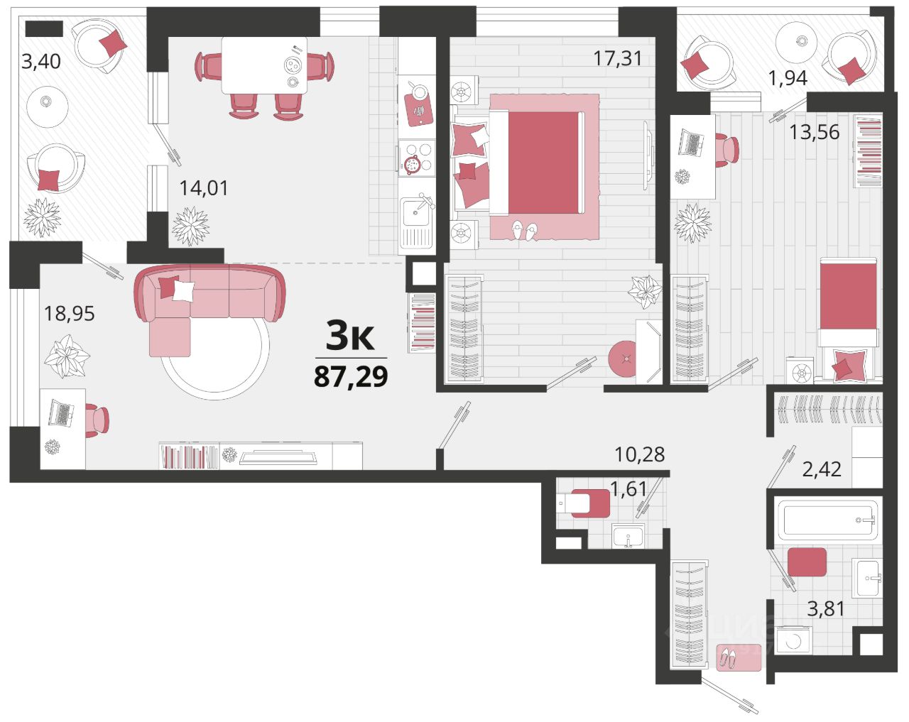Продаётся 3-комнатная квартира в строящемся доме (Литер 16), срок сдачи: II-кв. 2028, общей площадью 87.29 кв.м., на 18 этаже. "Родные просторы"- самодостаточный