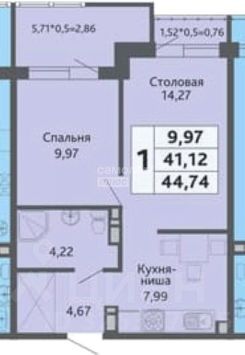 Площадь: 48 м² + лоджия 6 м².