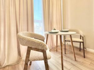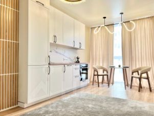 В квартире две изолированные комнаты и большая кухня-гостиная 19 м.кв.. У столовой зоны витражное остекление, что придает особую привлекательность семейным встречам за круглым столом.