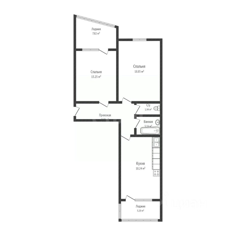 • Возможность перепланировки: Легко можно поменять местами кухню и комнату, создав еще более удобное пространство!