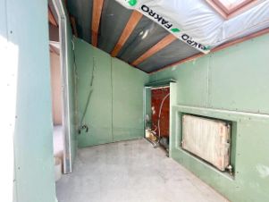 Квартира свободной планировки в предчистовой отделке. Начат ремонт - пространство разделено гипсокартонными стенами (фото планировки актуальное), установлен каркас металлической лестницы, балкон утеплен и застеклен. Окна квартиры выходят во двор, двор тихий.
