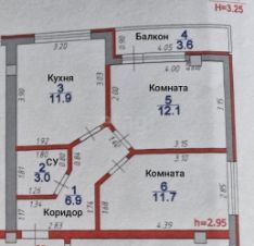 Общая площадь квартиры составляет 45,6м2, жилая - 23,8, кухня - 11,9 м2.