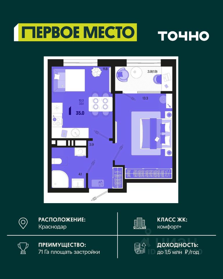 Жилой район "Первое место"- один из самых масштабных проектов в России. На территории 71 га 18 кварталов, 31 дом переменной этажности от 8 до 18 этажей, собственный парк 9 га, храмовый комплекс, пешеходный бульвар "Круг семьи", детские и спортивные площадки, мангальные зоны и различные локации для отдыха. В шаговой доступности действующие муниципальные образовательные учреждения: школа на 1 100 мест и детский сад на 250 мест. Помимо этого, в жилом районе "Первое место" построятся школа на 1700 мест с крытым 25-метровым бассейном и 5 детских садов на 1 490 мест. На первых этажах многоуровневых парковок "паркхабов" разместится более 61 тыс м2 коммерческих помещений. Жителям будут доступны собственный фитнес-центр, кафе, рестораны и магазины. В каждом подъезде предусмотрены дизайнерские холлы в стиле лобби отелей, консьерж-сервис, лапомойки, отдельные колясочные и велосипедные. Также в домах будут просторные кладовые помещения и комнаты для хранения почты с почтоматами для получения посылок из маркетплейсов.