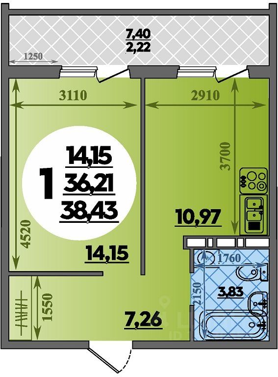 Продаётся 1-комнатная квартира в строящемся доме (Литер 42), срок сдачи: IV-кв. 2026, общей площадью 38.43 кв.м., на 11 этаже. Квартал 6 — это новый современный квартал в жилом районе Восточный с полной инфраструктурой и обновленным проектом благоустройства территории:
