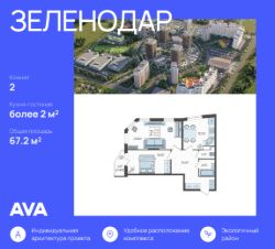 В зеленом экологически чистом пригороде Краснодара продается 2-комнатная квартира площадью 67.2 кв. м без отделки. Квартира расположена на 4 этаже, в жилом комплексе комфорт-класса "Зеленодар" от AVA.