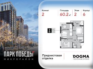 Срок сдачи: 1 кв. 2026, общей площадью 60.2 кв.м., на 2 этаже.