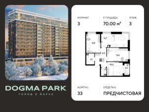 В продаже 3-комнатная квартира от застройщика! Мкр. "DOGMA PARK" г. Краснодар, Литер 33 Срок сдачи: 3 кв. 2027, общей площадью 70 кв.м., на 3 этаже.