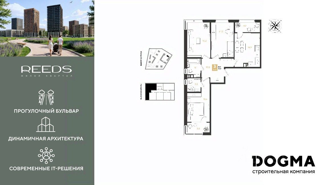 Жилой квартал бизнес-класса "REEDS" баланс природы и урбанистики. Дома построены по монолитно-кирпичной технологии с использованием системы Куубер, что обеспечивает прочность и долговечность конструкции. Пространство, где качество жизни на высшем уровне.