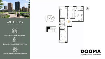 В продаже 3-комнатная квартира от застройщика! ЖК "REEDS" г. Краснодар, Литер 6