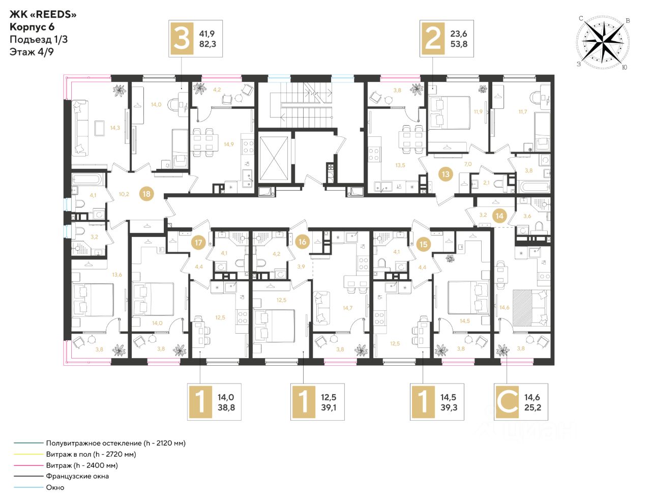 Срок сдачи: 4 кв. 2028, общей площадью 82.3 кв.м., на 4 этаже.