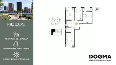 В продаже 3-комнатная квартира от застройщика! ЖК "REEDS" г. Краснодар, Литер 6