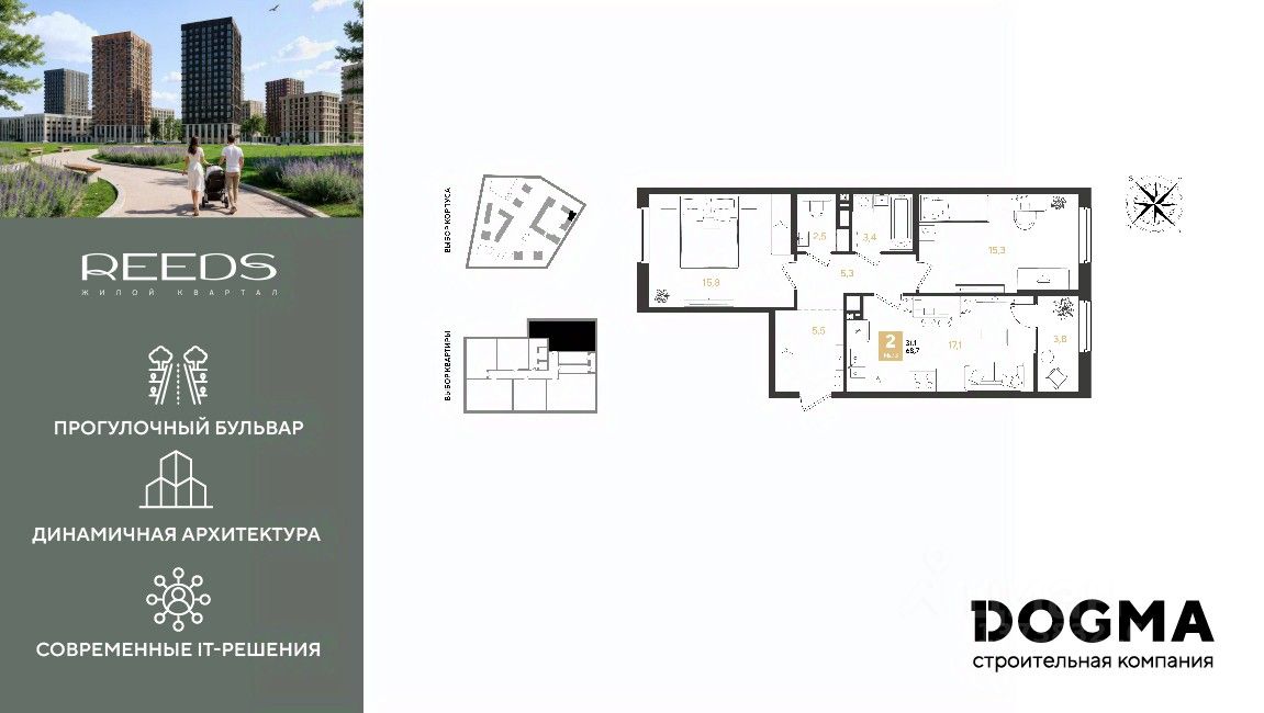 Жилой квартал бизнес-класса "REEDS" баланс природы и урбанистики. Дома построены по монолитно-кирпичной технологии с использованием системы Куубер, что обеспечивает прочность и долговечность конструкции. Пространство, где качество жизни на высшем уровне.