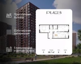 Срок сдачи: 3 кв. 2028, общей площадью 68.7 кв.м., на 6 этаже.
