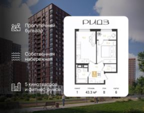 Срок сдачи: 3 кв. 2028, общей площадью 43.3 кв.м., на 8 этаже.