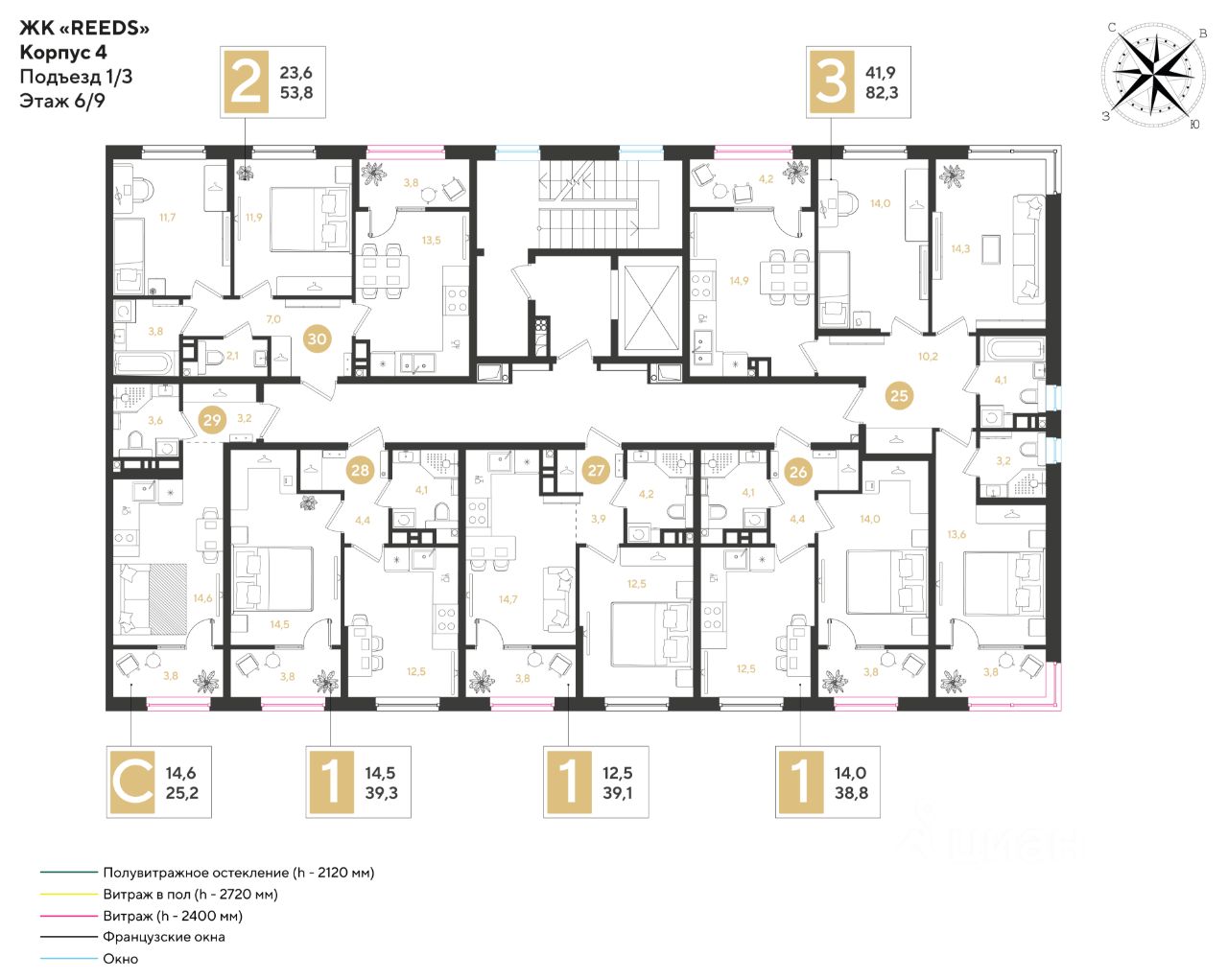 Срок сдачи: 4 кв. 2028, общей площадью 82.3 кв.м., на 6 этаже.