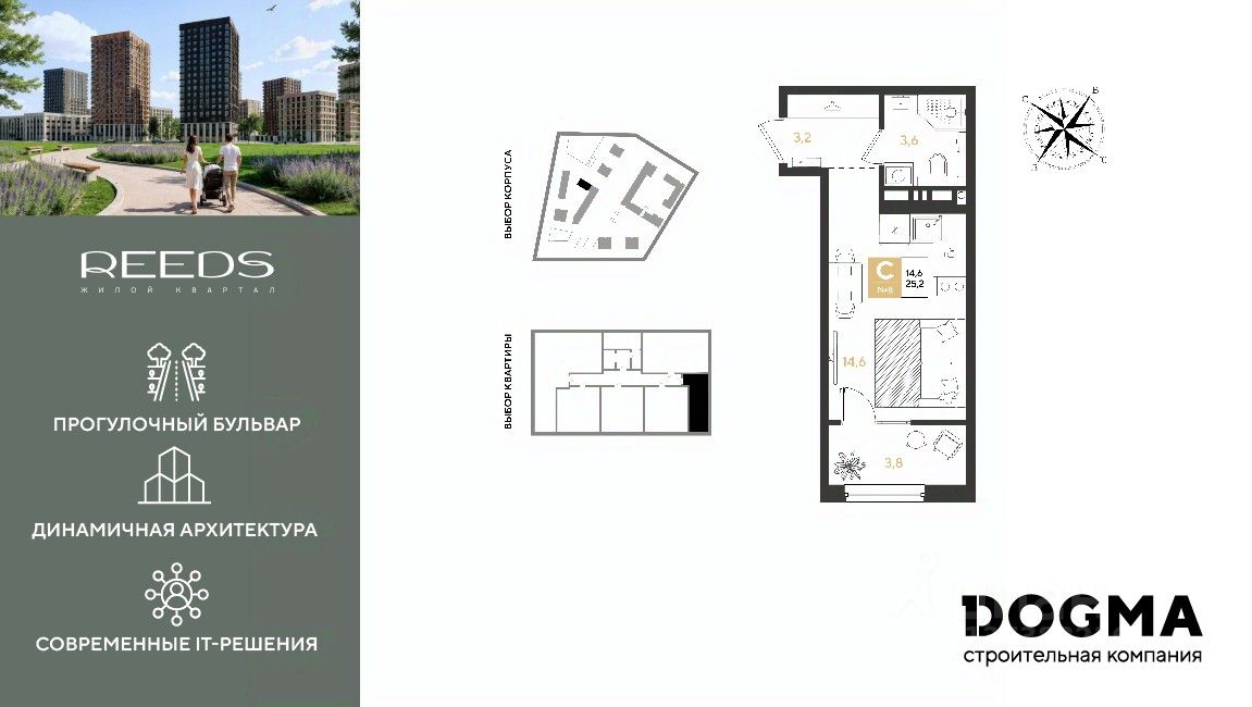 В продаже квартира-студия от застройщика! ЖК "REEDS" г. Краснодар, Литер 14