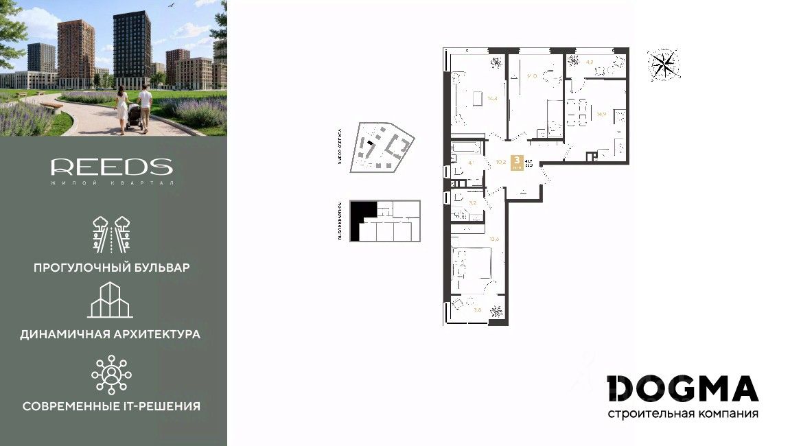 В продаже 3-комнатная квартира от застройщика! ЖК "REEDS" г. Краснодар, Литер 14