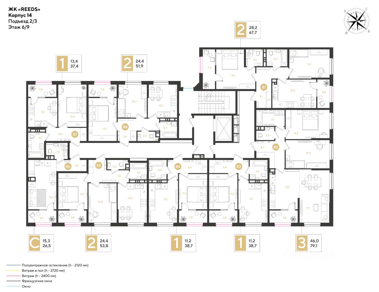 Срок сдачи: 4 кв. 2028, общей площадью 67.7 кв.м., на 6 этаже.