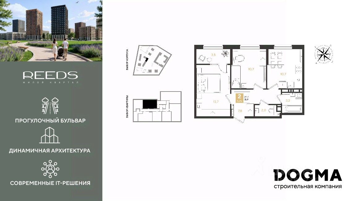 Жилой квартал бизнес-класса "REEDS" баланс природы и урбанистики. Дома построены по монолитно-кирпичной технологии с использованием системы Куубер, что обеспечивает прочность и долговечность конструкции. Пространство, где качество жизни на высшем уровне.