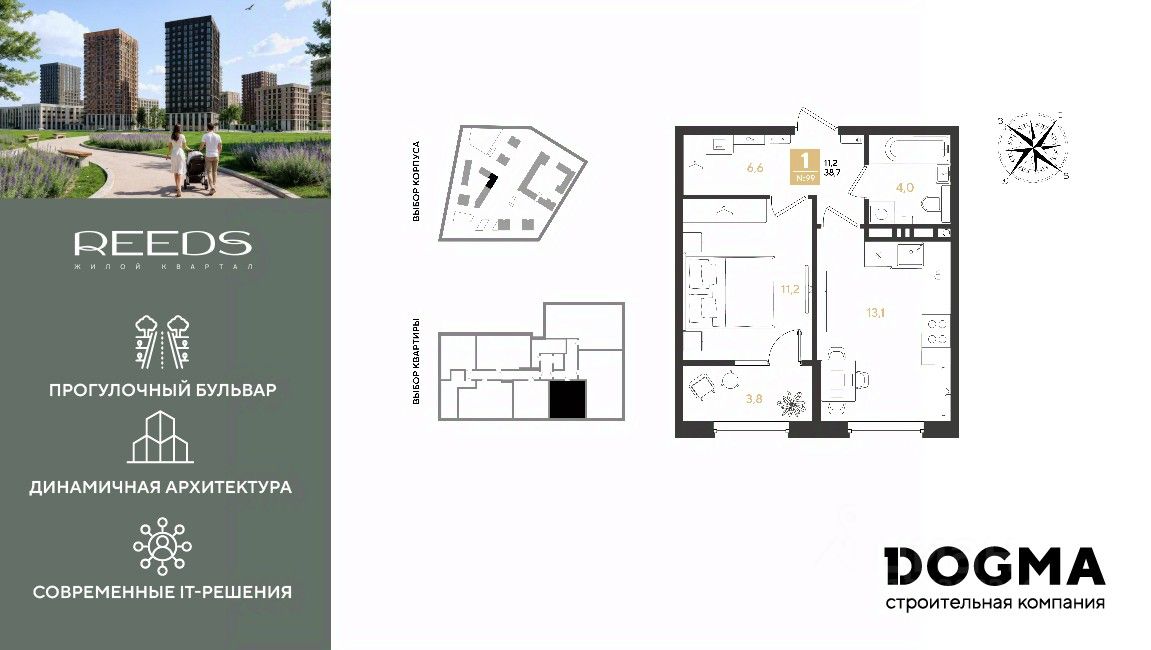 Жилой квартал бизнес-класса "REEDS" баланс природы и урбанистики. Дома построены по монолитно-кирпичной технологии с использованием системы Куубер, что обеспечивает прочность и долговечность конструкции. Пространство, где качество жизни на высшем уровне.