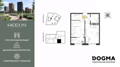 В продаже 1-комнатная квартира от застройщика! ЖК "REEDS" г. Краснодар, Литер 14