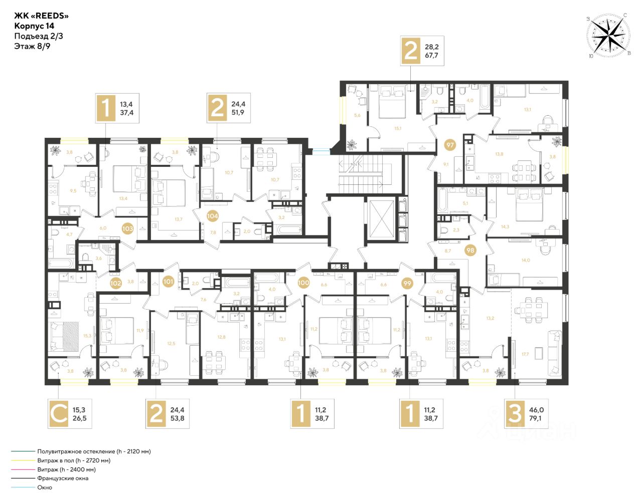 Срок сдачи: 4 кв. 2028, общей площадью 38.7 кв.м., на 8 этаже.