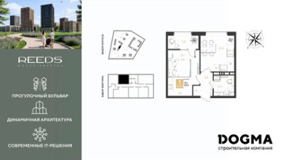 В продаже 1-комнатная квартира от застройщика! ЖК "REEDS" г. Краснодар, Литер 14
