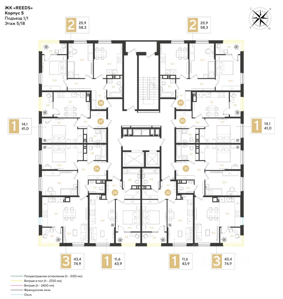 Срок сдачи: 4 кв. 2028, общей площадью 58.3 кв.м., на 5 этаже.