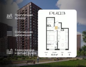 Срок сдачи: 3 кв. 2028, общей площадью 43.9 кв.м., на 5 этаже.