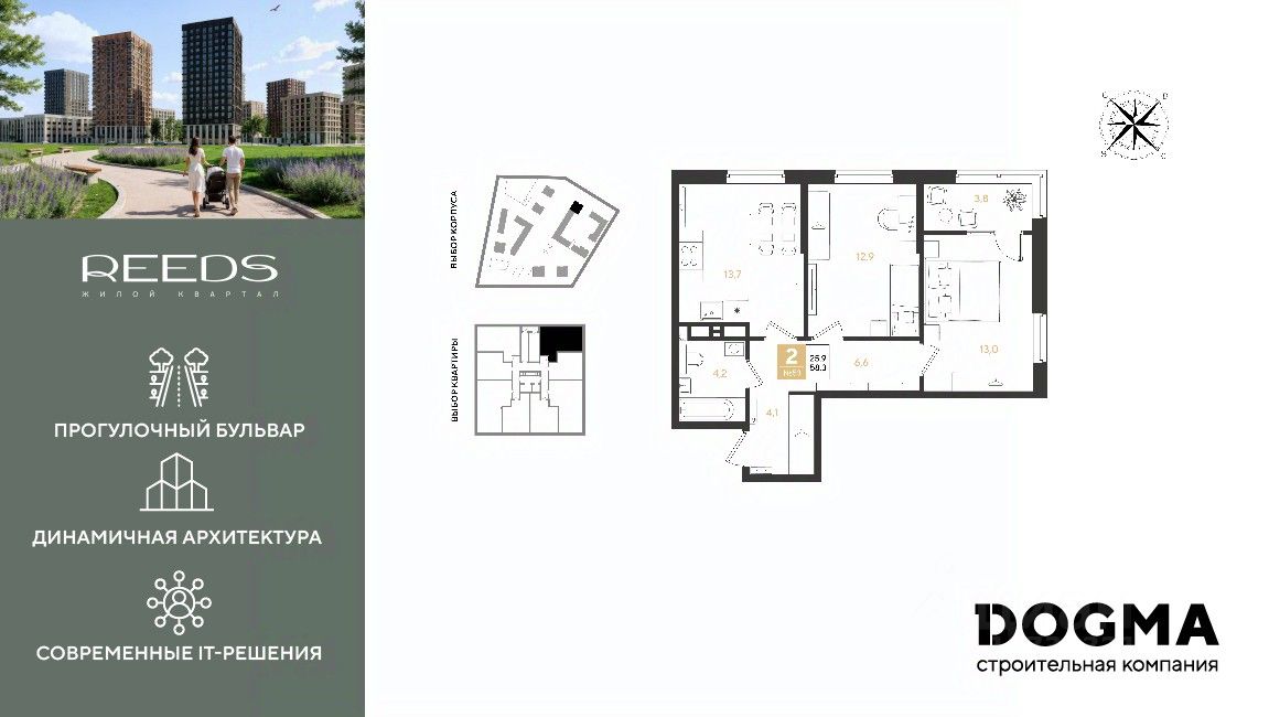 В продаже 2-комнатная квартира от застройщика! ЖК "REEDS" г. Краснодар, Литер 5