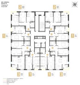 Срок сдачи: 4 кв. 2028, общей площадью 43.9 кв.м., на 8 этаже.