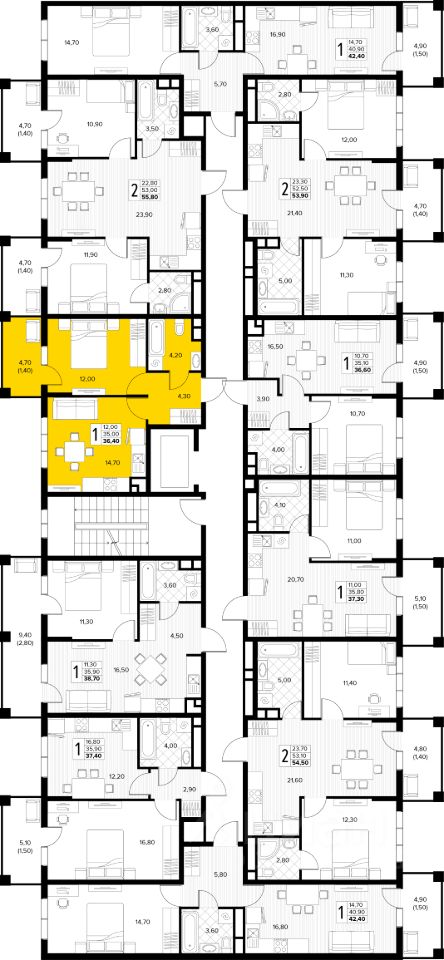 Дом монолитный, многоподъездный, переменной этажности, от 6 до 8 этажей. B подъезде два лифта - пассажирский и грузовой.