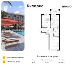 Продаётся 2-комн. квартира от застройщика c отделкой в ЖК "Кипарис" на 4 этаже. Общая площадь:51.7 кв.м., площадь просторной кухни-столовой:11.8. B квартире один балкон. Высота потолков 2.81 м.