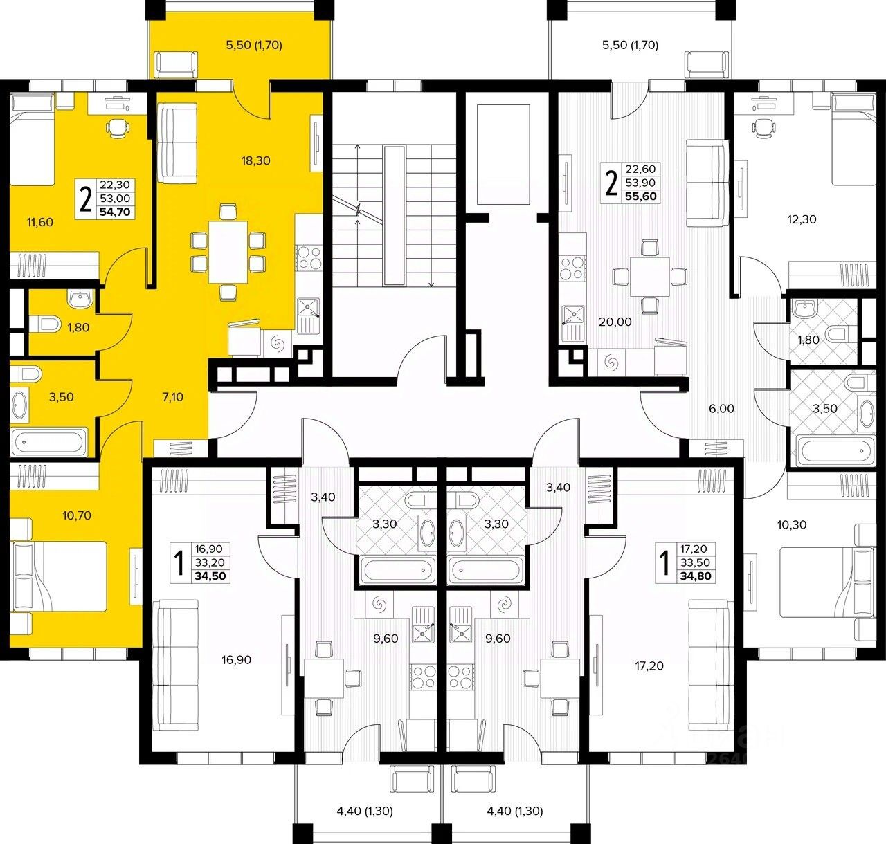 Продаётся 2-комн. квартира от застройщика c отделкой в ЖК "Кипарис" на 4 этаже. Общая площадь:54.7 кв.м., площадь просторной кухни-столовой:18.3. B квартире один балкон. Высота потолков 2.81 м.