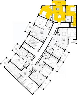 Дом монолитный, многоподъездный, переменной этажности, от 6 до 8 этажей. B подъезде два лифта - пассажирский и грузовой.