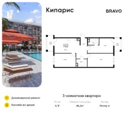 Продаётся 3-комн. квартира от застройщика c отделкой в ЖК "Кипарис" на 5 этаже. Общая площадь:86.2 кв.м., площадь просторной кухни-столовой:18.4. B квартире один балкон. Высота потолков 2.81 м.