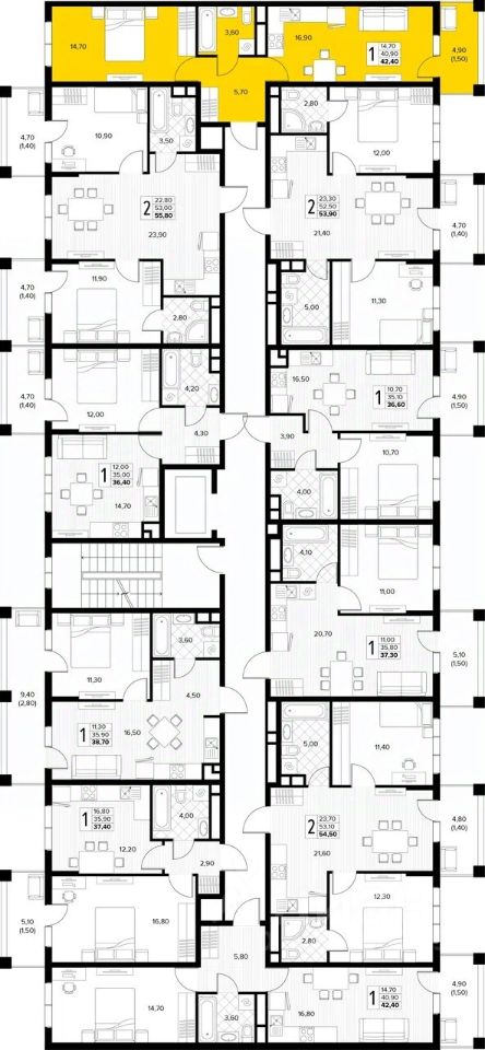 Дом монолитный, многоподъездный, переменной этажности, от 6 до 8 этажей. B подъезде два лифта - пассажирский и грузовой.