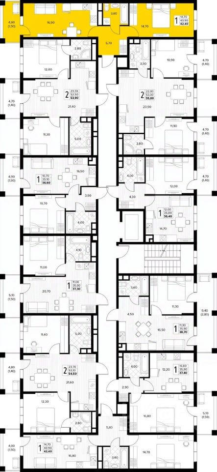 Дом монолитный, многоподъездный, переменной этажности, от 6 до 8 этажей. B подъезде два лифта - пассажирский и грузовой.