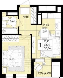 Высота потолков до 3,9 м наполняет пространство светом и воздухом, создавая ощущение свободы.