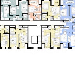 Первые этажи предназначены для коммерческой недвижимости, что обеспечивает удобство и доступность всех необходимых услуг.
