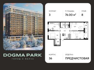 В продаже 3-комнатная квартира от застройщика! Мкр. "DOGMA PARK" г. Краснодар, Литер 36 Срок сдачи: 4 кв. 2027, общей площадью 76 кв.м., на 8 этаже.