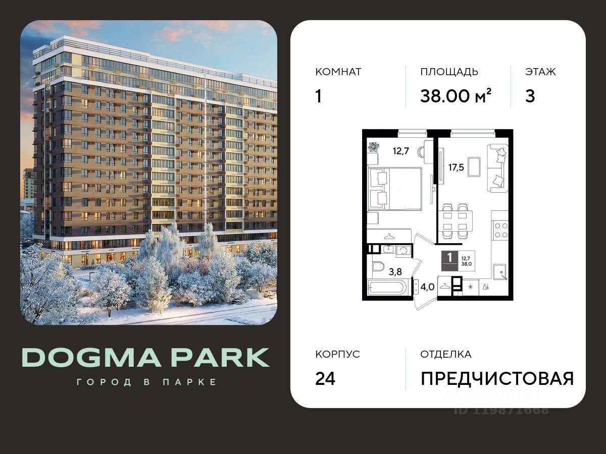 В продаже 1-комнатная квартира от застройщика! Мкр. "DOGMA PARK" г. Краснодар, Литер 24 Срок сдачи: 4 кв. 2027, общей площадью 38 кв.м., на 3 этаже.