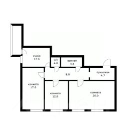 Квартира состоит из трёх комнат: зал 26 м2, комната 17.9 м2, спальня 12.8 м2, кухня 12.6 м2 с выходом на застеклённую лоджию 5.5 м2, прихожая и коридор 14.6 м2, сан. узел 2 м2, ванная комната 4.4 м2, согласитесь очень приятные характеристики !