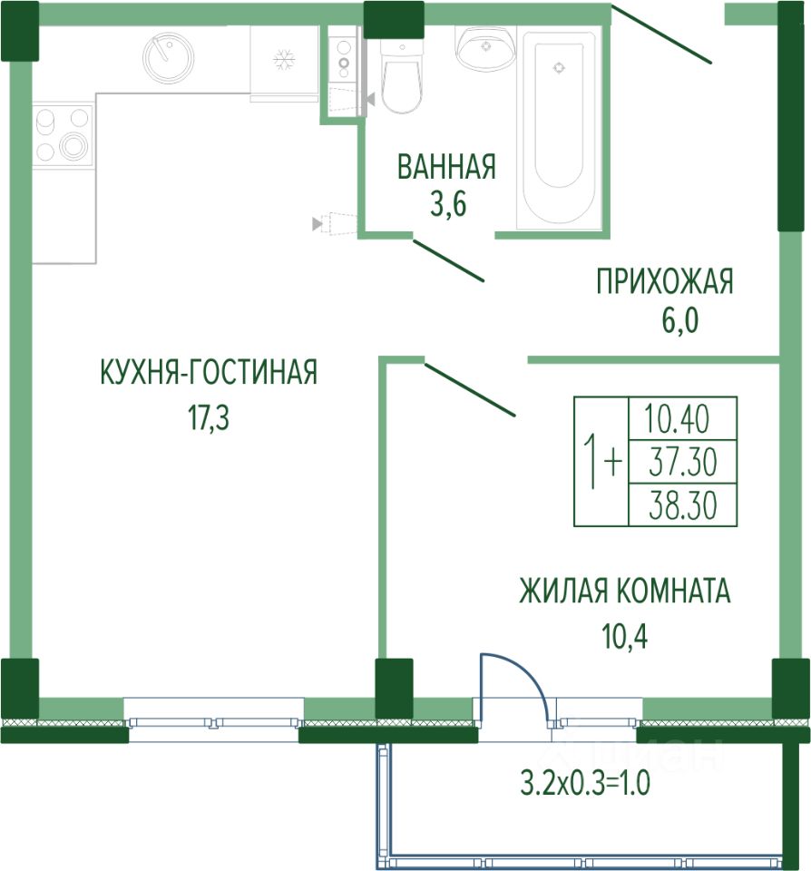 Жилая площадь10,4 м²