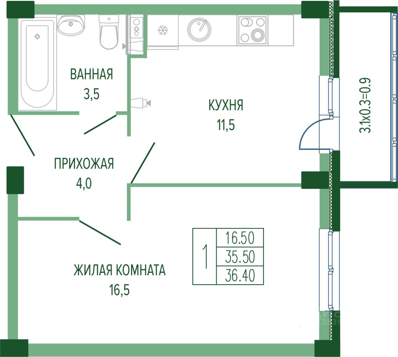 Жилая площадь16,5 м²