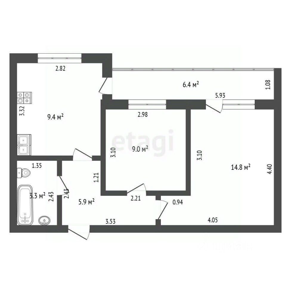 Квартира 44 кв м. находится на 3 этаже шестиэтажного дома.
