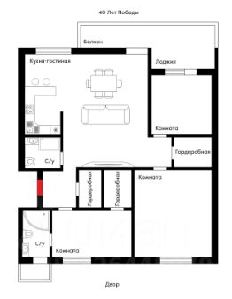 1 лоджия, 1 балкон
